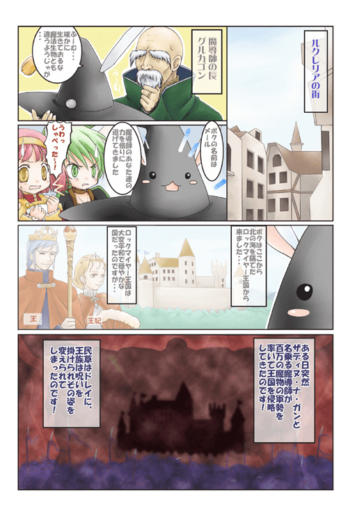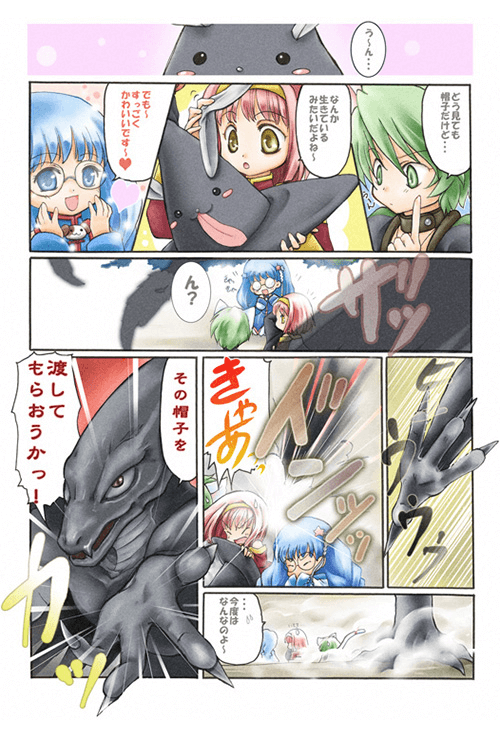 COMPILEのメインイラストレーター「壱」によるフルカラーコミックで描かれる全く新しい『魔導物語』。元気はつらつ三人娘と謎の喋る帽子とのどたばた珍道中! 果たして無事に目的を達する事は出来るのか? 原案:猫庭王米光 原作:KEROL 作画:壱