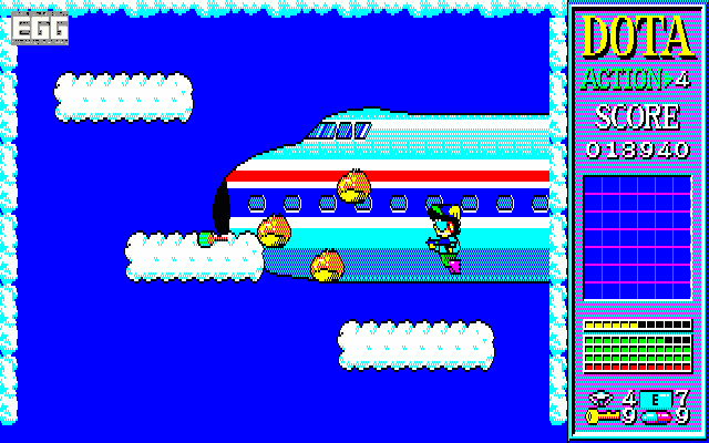ゲームはテンキーで四方向に移動、Shiftでジャンプ、スペースキーで攻撃を行う。マップには武器(マシンガン、銃、空気銃等)、帽子(鉢巻き、羽付帽子、トゲ帽子など)、メガネ(サングラス、水中めがね)といった装備品や、弾薬、薬(HP回復)、カギ、お菓子類(その場で回復)といった消費アイテムが落ちている。弾薬、薬、カギは最大9個まで拾え、自動使用という親切設計。ただし9個以上はストックされないので、状況によってはわざとアイテムを残して進み、後から戻ってきて利用するといったテクニックも必要となる。また装備品は各一種類しか装備できず、欲しい武器や帽子があったらその場で交換することになる。このあたりのマネジメントは実に面白い。