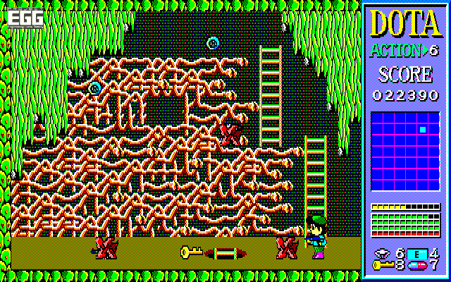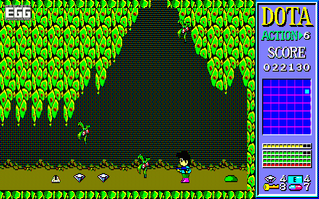 基本的にはカギを集めてマップを探索するが、カギを消費してマップを進むパズルアクションというと、難易度が高いことで有名になったアクション「ザ・キャッスル」を思い出す人がいるかと思う。しかし本作はアクションゲームにちょっとしたパズル要素がある程度なので、初心者でも十分に安心して遊べるレベル。レトロゲームは難度が高いことが多いが、今遊んでもかなり気楽に楽しめるのだ。ただし、セーブ機能がないのでプレイは一発勝負。全4面をクリアーするには、それなりの時間がかかるので時間のあるときにじっくりと遊ぶことをオススメしたい。ある程度やりこんで慣れてきたら、効率良い攻略ルートを模索したり、どう使うのか謎な武器(オニギリなど)を試行錯誤して戦う楽しみもある。また敵を倒したり落ちているお金を拾うことでスコアも稼げるので、そうした部分で記録を狙ってみるのも面白いだろう。