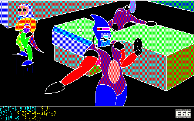 基本的には「キク」「ナゲル」「トル」「シラベル」「ウツ」「タタク」「アケル」「ハイル」「カウ」「イロ」といった行動とカーソルを使って攻略する。会話については話し言葉を入力するといった感じだ。当時のシステムではちょっと独特な方式だった。難易度はかなりのモノで、おそらくヒントなしでは攻略は不可能に近い。最初の牢獄のシーンでは、なんとか脱獄しなければならないが、正解は何度か鉄格子を叩いて鉄パイプをはずし、それで壊れやすい壁を何度も殴って脱出となる。間違えてガス管などを外したりすれば、ガスが噴出してゲームオーバー。実はこのシーンだけで挫折してしまったプレイヤーもたくさんいた。当時、本作を攻略しようと思ったら友達と情報交換したり、雑誌の攻略記事を参考にしたりと、自分の勘だけではなく、あらゆる物を駆使して攻略した記憶がある。当時は解けなくて当然のアドベンチャーゲームも多く、本作はそうしたタイトルの一つだったのだ。ある意味、メーカーとプレイヤーの知恵比べ、いやメーカーの挑戦状にどうやって応えるか? といった雰囲気だったといってもいいだろう。