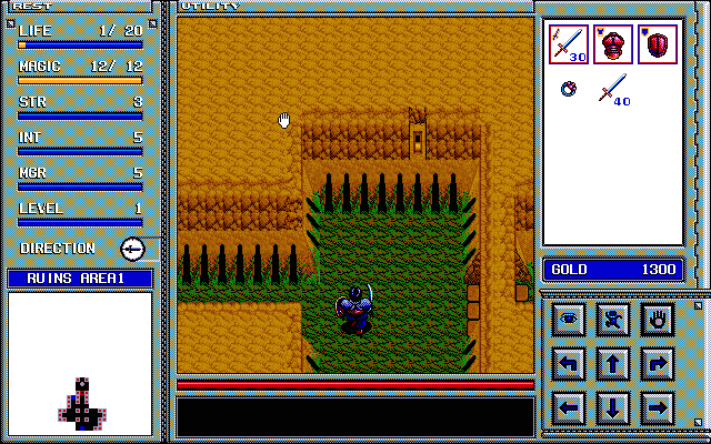 本作の概要もざっくり紹介しておこう。『ブランディッシュ』は、流浪の剣士アレスの冒険を描いたアクションRPG。あるとき、女魔道士ドーラと戦ったアレスだったが、彼女の放った魔法の爆発に巻き込まれて地下へと落下してしまう。アレスが目が覚ますとそこには塔が……。そしてアレスは地上へ戻るために塔を登ることになるというものだ。なお、スクリーンショットを見てもらえば一目瞭然だが、ゲームはトップビューで直感的に状況を把握できるものの、実は操作方法にやや癖があった。詳しくは後述するが、これこそが『ブランディッシュ』の魅力となっていたように思う。