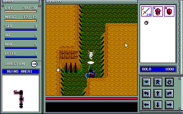『ブランディッシュ』の第一報がもたらされ、スクリーンショットを見ていただけの頃は、きっと上にキーを入れれば上に、右にキーを入れれば右を向いて歩くに違いない……と思っていた。ところが、実際に触れた『ブランディッシュ』は、想像していたものと異なっていたのだ。前進や後退、カニ歩き(向きを固定したまま右や左への移動)は予想通りだったが、なんと右や左を押すことで自分ではなく、マップそのものがグルッと回るのだ。つまりこのゲームにおける前進は、常に画面の上に向かって行うものだったのである。