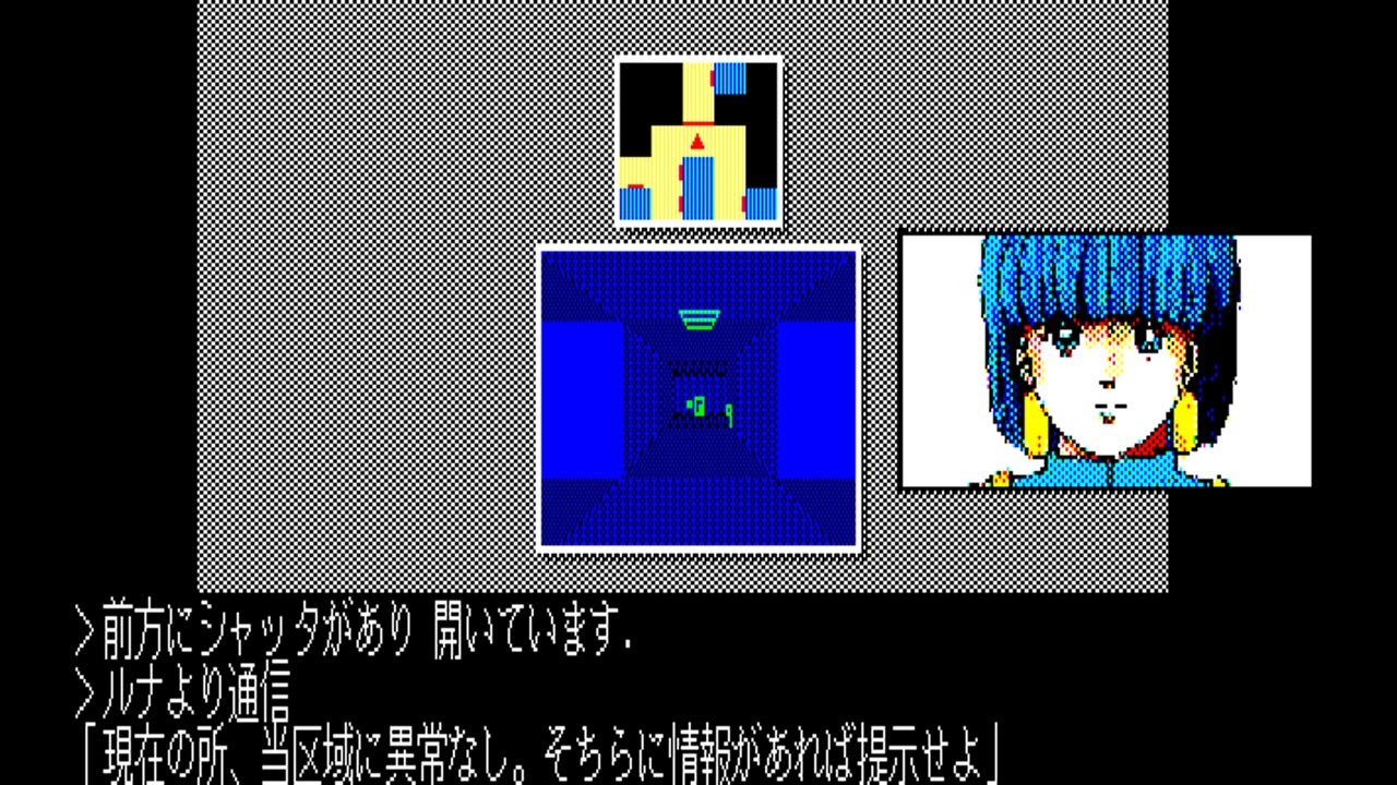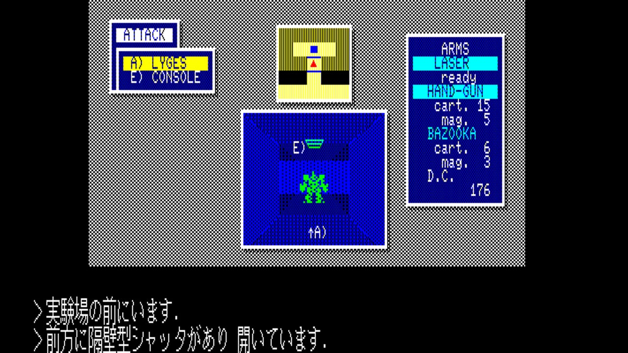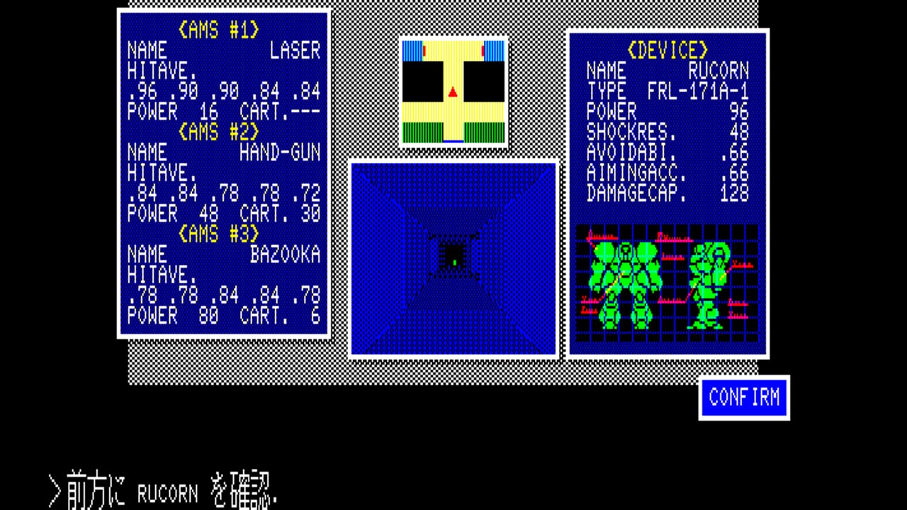 ゲームは3D RPGのような雰囲気で進行。前/後/左/右/右回転/左回転はもちろん左回転で180度転回といった動きができるところなどは、実にメカモノらしい動き。なお、敵と遭遇した場合はコマンド選択式の戦闘になりますが、移動を交えながらのコマンド選択方式となるため、実に臨場感のある戦闘を楽しむことができます。移動を交えた上手な戦術がゲーム攻略の鍵となることでしょう。