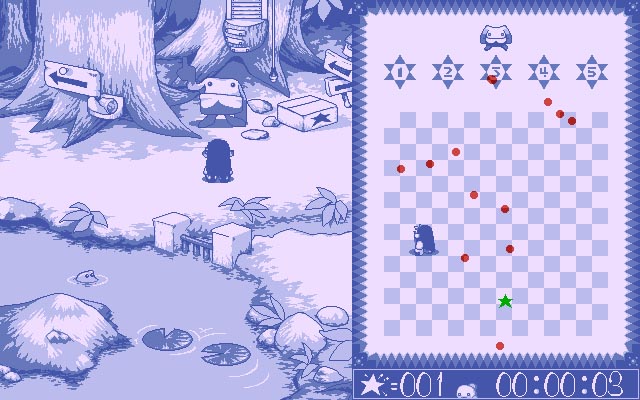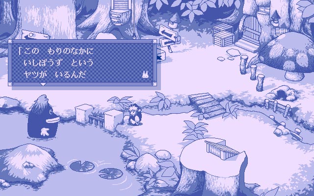 様々な演出が楽しめる本作ですが、ある特定の条件を満たすことでミニゲームが楽しめます。一つは「ほしあつめ」というアクションゲームで、赤い星を避けながらミドリの星を集めるというもの。もう一つが「なぞなぞ」。読んで字のごとく、「なぞなぞ」が楽しめる。ちなみにミニゲームの出現条件はマップ上のどこかに隠れている「石ぼうず」と「なぞなぞ使い」が握っているぞ。