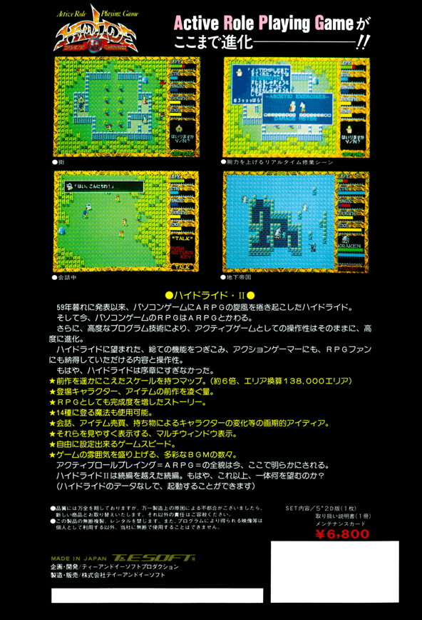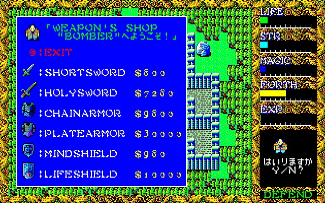本作は1986年にリリースされた。アクションRPG。プレイヤーは神に選ばれた心の清らかな男の子となって、邪悪な意識を封印する冒険に出発します。前作で好評だった体当たりによる攻撃システムはもちろんですが、今回は新たにFIRE、ICE、WAVE、JUMPなどの魔法が使用可能となり、さらぶパラメーターにFORTH(心)が用意されたことで善悪の概念なども表現可能となっています。他にも会話モードによる情報収集、街での買い物やキャラの育成、前作の6倍ものマップなど、質、量ともに前作を大きく凌駕する仕上がりを見せています。