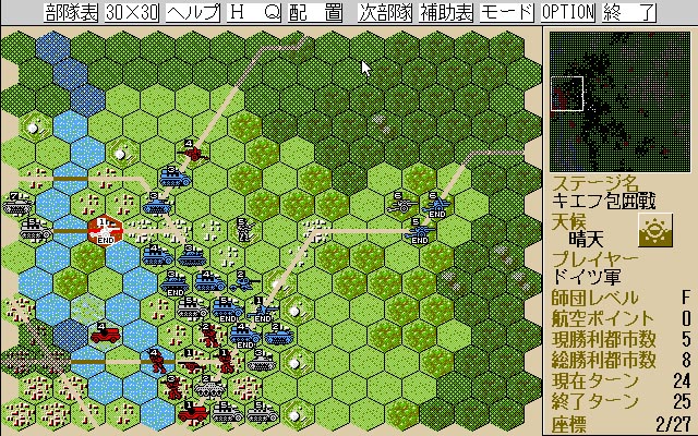 本作は1990年にリリースされたターン制のシミュレーションゲーム。プレイヤーはドイツ機甲師団の師団長となって、友軍とともにソビエト軍と戦うことになります。ゲームには二つの練習シナリオと、全12ステージを攻略するグランドシナリオが用意されているので、まずは練習ステージを楽しみつつ、ゲームに慣れてきたらグランドシナリオに挑戦しましょう。ちなみに戦いを重ねることで各部隊がレベルアップするというフィーチャーなどもあります。