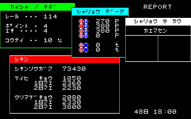ゲームでは1年という限られた期間のなかで、鉄道会社を運営して上手に資金を稼ぎながら大統領列車をゴール目指して進めることになります。大統領列車が事故にあったり、無理な経営を行って資金が尽きたり、365日を過ぎてしまったりするとゲームオーバー。ややパズルゲーム的な仕上がりといえるでしょう。いまだに知名度が高い本作、この機会にその原点を楽しんではいかがでしょうか。
