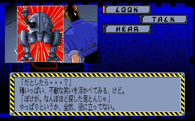 1992年にコンパイルよりリリースされた『Rusty #2』は、『ディスクステーション98 #12』に収録されていたアドベンチャーゲームです。ゲームはアドベンチャーゲームとしては馴染み深いコマンド選択式を採用しており、「Look」「Talk」「Hear」といったコマンドを選択するだけで物語は進行していきます。