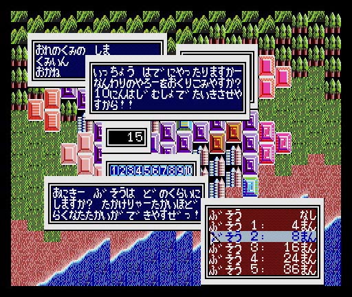 本作は1989年にリリースされたシミュレーションゲーム。プレイヤーは先代親分の遺言で組を継いだ極道となって、敵対する組と戦いながら次第にシマを広げていくことに……。ゲームは非常にユニークな戦術シミュレーションとなっており、抗争を行なう“でいり”、収入源となるお店を増やす“ふうぞく”、組員を増やす“じんいん”、賭け事でお金を増やす“ばくち”など、他のゲームでは見られないようなコマンドが目白押しとなっています。