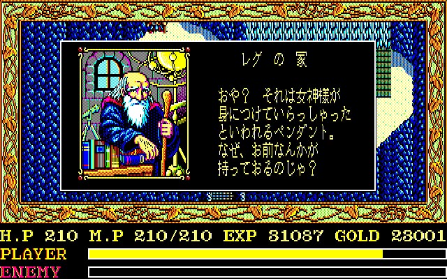 今回は前作で六冊のイースの本を集めた赤毛の冒険家アドル・クリスティンが、本の魔力によって天空の世界へと導かれ、古代王国イースの謎に迫るという内容となっています。前作同様に体当たりで攻撃というシンプルなゲームスタイルですが、今回は魔法という追加要素によって、戦闘はより迫力のあるものになり、移動魔法は物語のスケールを広げつつも冒険のテンポを落とさない要素として、ゲームを盛り上げてくれることでしょう。そんな魔法の中でも注目したいのは“魔物と会話が出来る魔法”。これはゲームを進める上で必要不可欠な魔法で、バラエティ豊かな魔物たちの生活感が垣間見られるという興味深いものとなっています。
