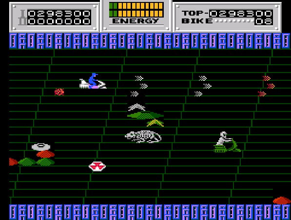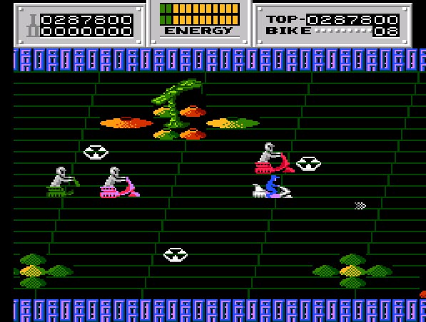 本作は1986年にリリースされたシューティングゲーム。プレイヤーは小型ホバーリングバイクを操作して敵戦闘兵や砲台と戦い、仲間を救出することになります。