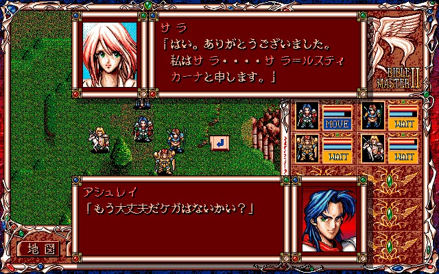 本作は1994年にリリースされたシミュレーションゲーム。フィールド上でキャラクタが接触すると戦闘シーンに切り替わり、戦況を見ながら任意で魔法や道具を 使用して味方を勝利に導く……という前作のスタンスを踏襲しつつ、今回はユニット同士の相性や、地形効果の強化、射程距離の設定などを盛り込んでおり、より戦術的な戦いが楽しめるようになりました。ちなみに、戦闘に入ったユニットはリアルタイムで告知されるようになり、知らないうちに大打撃といった不足の事態を回避できるようになっています。他にも今回はブレオルーツの5倍の面積を誇るアグライアが舞台となっているため、マップ面積も大幅にアップして遊び応えも十分! さらにプロフィールからキャラの特性をつかむバイブルモードもパワーアップし、前作以上に楽しめる内容になっています。