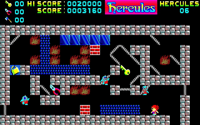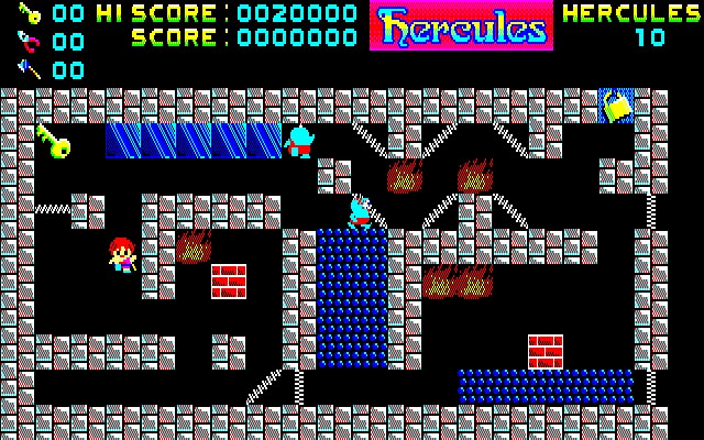 本作は1986年にリリースされたアクションパズル。プレイヤーはへらくれす君となって、数々の試練を突破し、でうす様に会いにいくことになります。各ステージには、動かしたり壊したりできるブロックや、ジャンプできるスプリング、次の部屋へ進む扉を開けるためのオノやカギなどのアイテムが配置されており、さいころぷす、きかんてす、けんたうろすといった敵も徘徊しています。