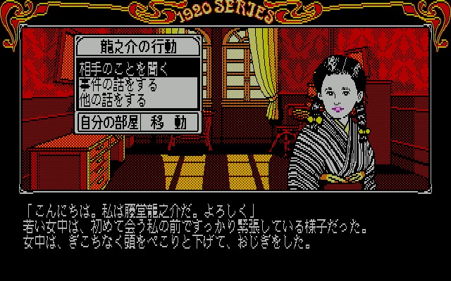 本作は1988年にリリースされたコマンド選択方式のアドベンチャーゲームで「藤堂龍之介探偵日記シリーズ」の第一弾にあたる作品。プレイヤーは探偵の藤堂龍之介となって、「琥珀館」を舞台とした殺人事件に挑むことになります。