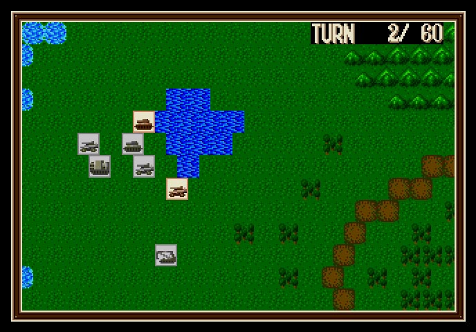 ゲームは疑似ヘックス&ターン制を採用。各ターンの最初に移動方法や攻撃目標などを設定し、ゲームを進行させると自動で戦います。序盤では装甲車、主力戦車、陣地砲台、修理社などを中心に戦うことになりますが、マップを制圧することで重戦車、自走砲、誘導弾車といった新たな兵器が加わり、次第に戦術の幅も広がっていきます。なお兵器には指揮官を選択できるフィーチャーなどもあり、さらに指揮官には能力の違いばかりか、戦闘を重ねることで成長していくというRPG的な要素もあります。