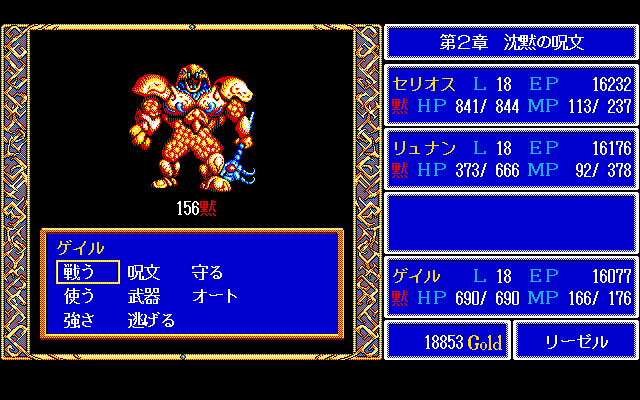 本作の見どころは、なんといっても魅せるシナリオです。当時、同社のタイトルといえば、キャラクターの掛け合いなどは控えめで、主人公キャラもあまりしゃべらないというものが多かったのですが、本作では大胆にもそうした既定路線から外れ、シナリオ性を前面に押し出しています。そういう意味ではストーリー主体のロールプレイングゲームを日本ファルコムが作るとこうなる! という同社の気概が感じられる作品といっても過言ではありません。そして、この試みは大成功となり、それは今日も人気を博している『軌跡シリーズ』(英雄伝説第三期)として受け継がれています。