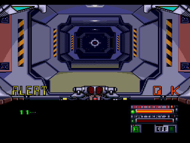 ゲームはFPSライクな構成となっており、3Dビューで移動しつつ画面内のターゲットを動かして敵を攻撃します。主人公は敵との距離に反応するセンサーを装備しており、センサー音を頼りに敵を索敵します。そしてセンサーの反応音の間隔がしだいに狭くなり、警告音に変化するころになると敵と遭遇。激しい銃撃戦となります。この演出は緊張感があり、無人のステーションでの戦いを盛り上げてくれることでしょう。
