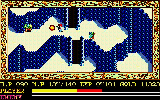 今回は前作で六冊のイースの本を集めた赤毛の冒険家アドル・クリスティンが、本の魔力によって天空の世界へと導かれ、古代王国イースの謎に迫るという内容となっています。前作同様に体当たりで攻撃というシンプルなゲームスタイルですが、今回は魔法という追加要素によって、戦闘はより迫力のあるものになり、移動魔法は物語のスケールを広げつつも冒険のテンポを落とさない要素として、ゲームを盛り上げてくれることでしょう。そんな魔法の中でも注目したいのは“魔物と会話が出来る魔法”。これはゲームを進める上で必要不可欠な魔法で、バラエティ豊かな魔物たちの生活感が垣間見られるという興味深いものとなっています。