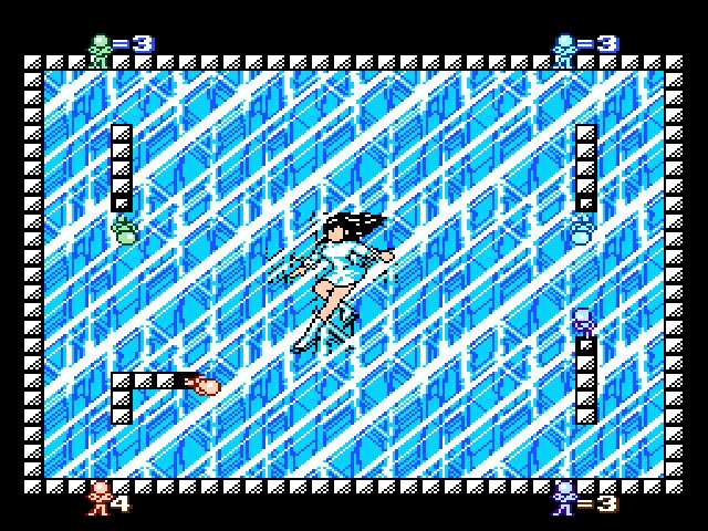 本作は1990年にリリースされた対戦アクションゲーム。ルールは非常に簡単。プレイキャラを操作すると後方にブロックが出現。このブロックで相手を移動できなくすれば勝利になります。ゲームでは対CPU、2人プレイ、2人対CPU、3人、4人の対戦が可能。