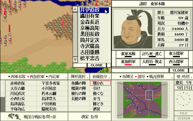 本作は1991年にリリースされたシミュレーションゲーム。プレイヤーは、関ヶ原の合戦において東軍の総大将「徳川家康」か、西軍(大坂方)総大将「石田三成」になって、この戦いを勝利に導くように采配をふるいます。