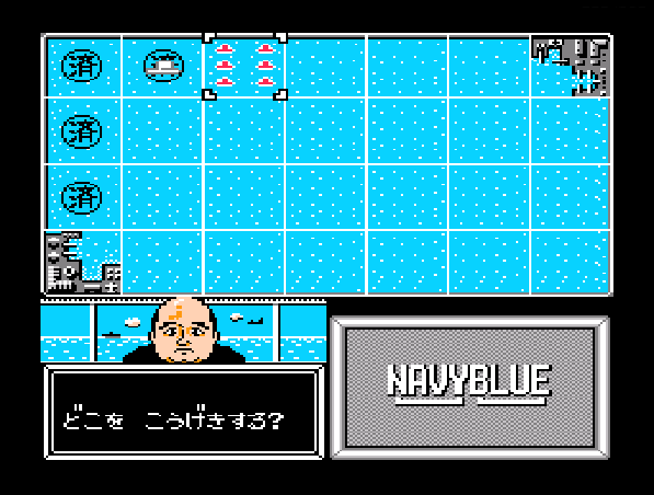 本作は1992年にリリースされた海戦シミュレーションゲーム。海戦をテーマとしており、プレイヤーとCPUはそれぞれのマップに、戦艦、空母、巡洋艦、駆逐艦などを配備。ターン性で交互に相手の海域を攻撃し合います。攻撃後にはミサイルが当たれば「HIT」、1マス隣に外れた場合は「大波」、2マス以上外れた場合は「MISS」となり、この情報を頼りに敵艦隊の位置を予測&攻撃。先に敵の部隊を全滅させた方が勝利となります。なお各ステージをクリアすると、使える艦の数やポイント数が増加する演出も……。ここで入手したポイントを使えば武器などを配備することもできます。