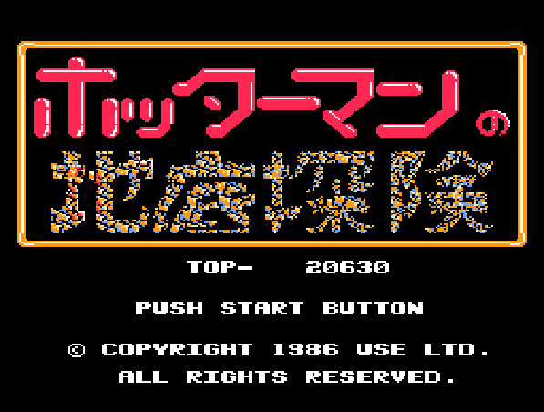 本作は1986年にリリースされたアクションゲーム。プレイヤーは、ペンペン村一番の穴掘り名人のホッターマンとなって、大地震を止めるため、地底の冒険へと出発することになります。ゲームは地面を掘り進めることで進行しますが、ヤワラカ層、カタ層、ホレナサ層、オヨゲ層などの様々な岩盤があり、掘り進めるには時間がかかる層や、アイテムを使わないと破壊できない層などもあります。