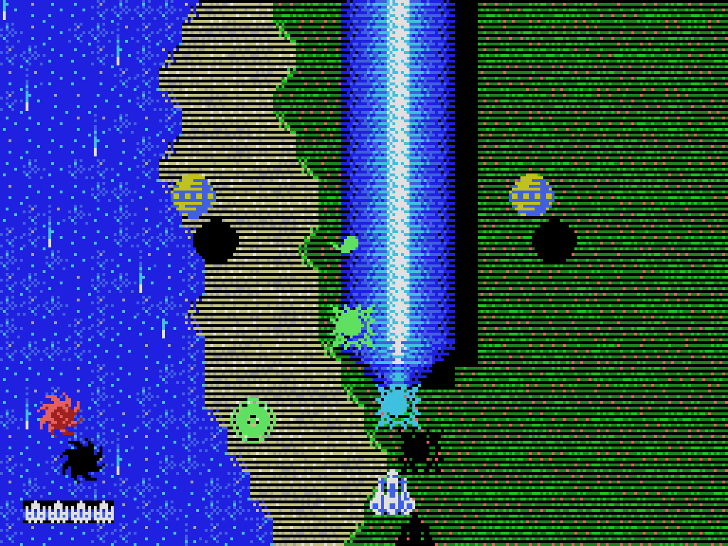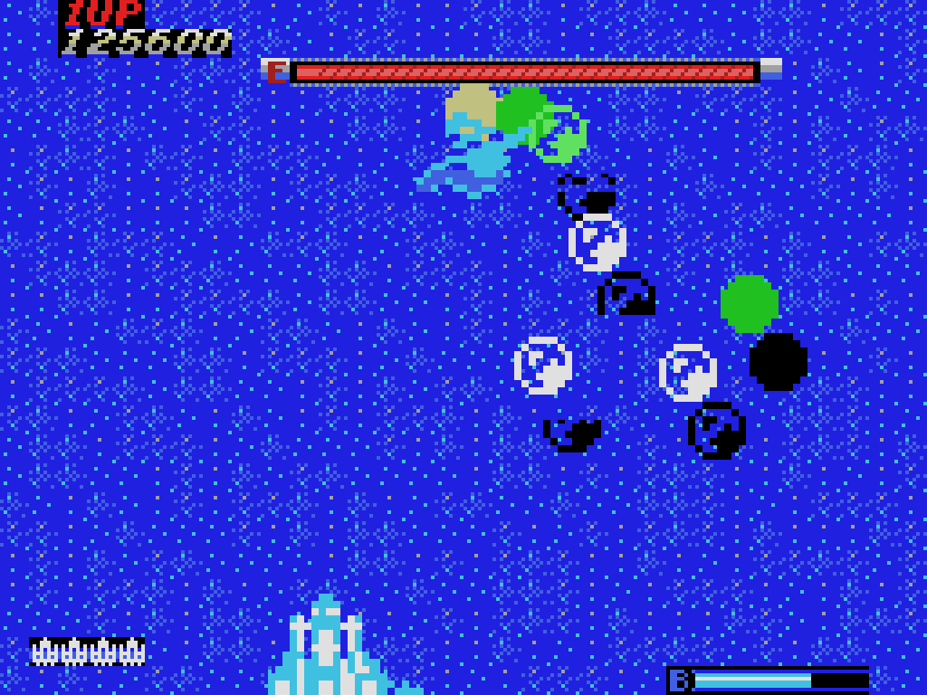 攻撃ボタンを長押しすることで使用できるビームは、敵を10匹倒すか敵弾を20発消すことで1発分補充されます。そのため、ピンチの際に思い切って使ってしまっても、その後に比較的容易に補充することが出来ます。これらのシステムは、シューティングが苦手なプレイヤーにもやさしいシステムと言えるのではないでしょうか。