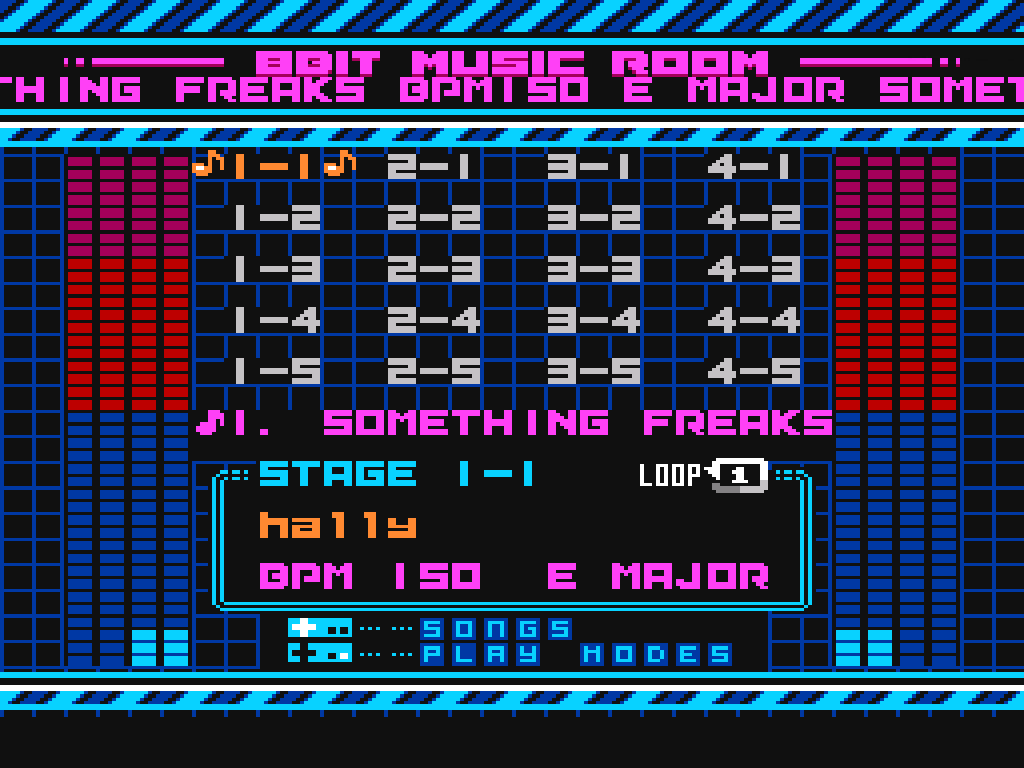 本作には合計20曲の楽曲を収録しており、これら楽曲の制作には、ゲーム音楽界のレジェンドを中心に、現在チップチューン界で活躍するアーティスト達が参加!完全新作の8ビットミュージックをお楽しみいただけます。なお、ミュージックモードもありますので、楽曲だけをじっくりと楽しむこともできます。
