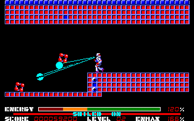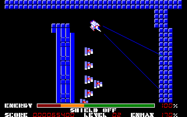 本作は1985年にリリースされたアクションシューティングゲーム。プレイヤーはロボット形態と戦闘機形態の二つに変形できるハイパーデュアルアーマー“THEXDER”を操作して、小惑星ネディアムの磁力線発生装置を破壊する戦いに身を投じることになります。ゲームはサイドビューで構成されており、ステージは全16面(+裏16面)で構成。敵との戦いでは追尾レーザーが使えるものの運動性能に劣るロボット形態と、進行方向にしか攻撃はできないが機動力に優れた戦闘機形態を、シチュエーションに応じて上手に使い分けながら進んでいきます。バリアーなどもありますが、頻繁に使用するとエネルギー切れを起こしてしまうので、ここぞ!というときだけ使うようにしたいところです。ちなみにゲームはセーブ機能なしのライフ制なので、プレイは毎回、一発勝負!ゲーム難度は高めなので、腕に覚えのある方は、ぜひチャレンジしてください。