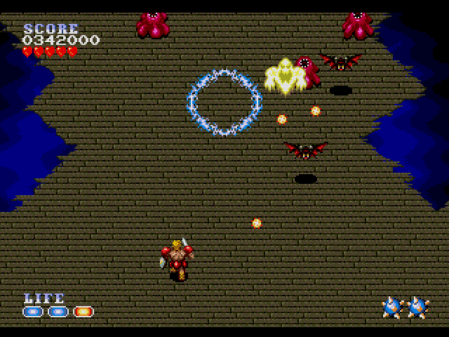 本作は1991年にリリースされた縦スクロールのアクションシューティングゲーム。プレイヤーは戦士レオンとなって、突如現れたブラーゼン伯爵が率いる魔物の軍団と戦うことになります。