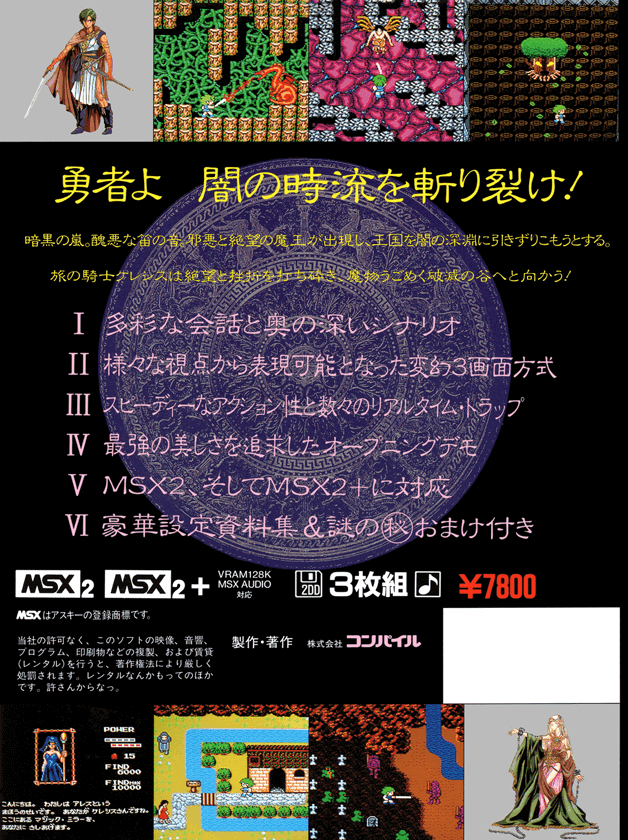 本作は1987年にリリースされたアクションRPG『魔王ゴルベリアス』のパワーアップバージョン。グラフィックスのリファインや8方向への移動を盛り込み、1988年にリリースされました。プレイヤーは妹を探して旅をする騎士のケレシスとなって、魔物の谷を舞台にリーナ姫を救出する冒険に出発します。