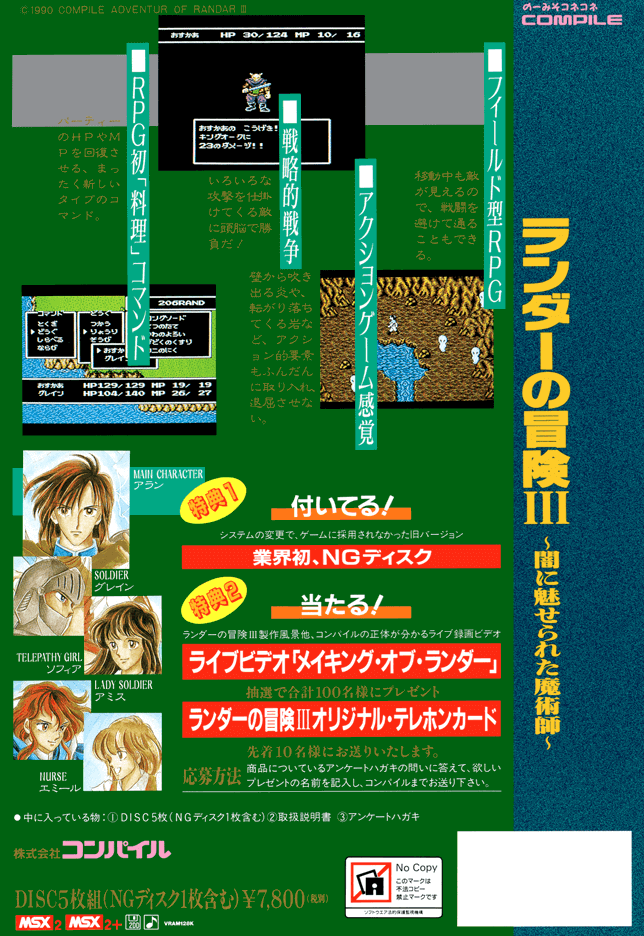 コンパイルといえば、おちゃらけたユニークな作品が多いのですが、本作では正統派なファンタジーRPGを感じさせるシリアスな物語が堪能できます。人気のランダーシリーズ第三弾、ある種“コンパイルの本気”が見られる作品といってもいいかもしれません。