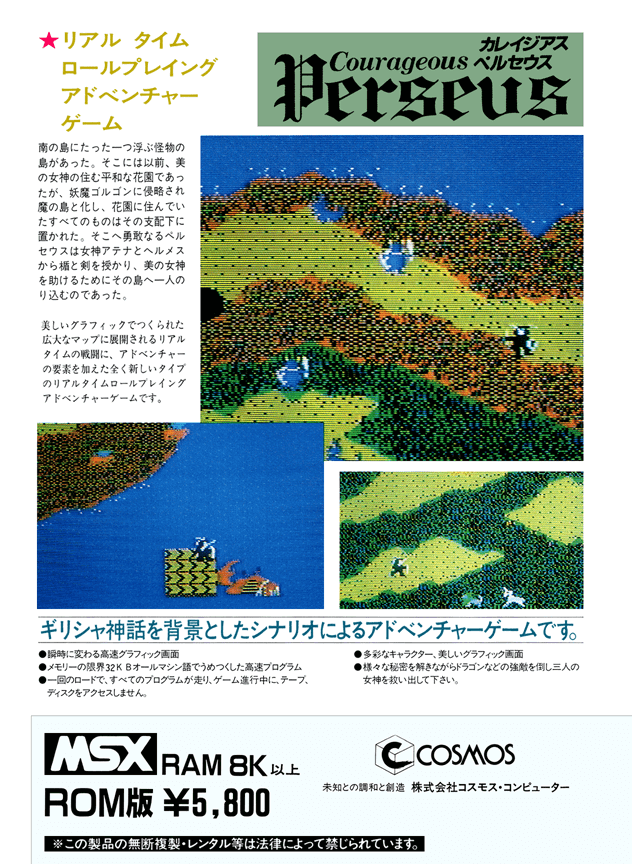 本作は1985年にリリースされたアクションロールプレイングゲーム。主人公は勇者ペルセウスとなって、ゴルゴンに支配された魔の島を舞台に、美の女神を救うための冒険をすることになります。