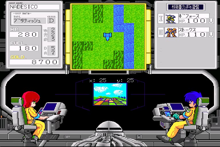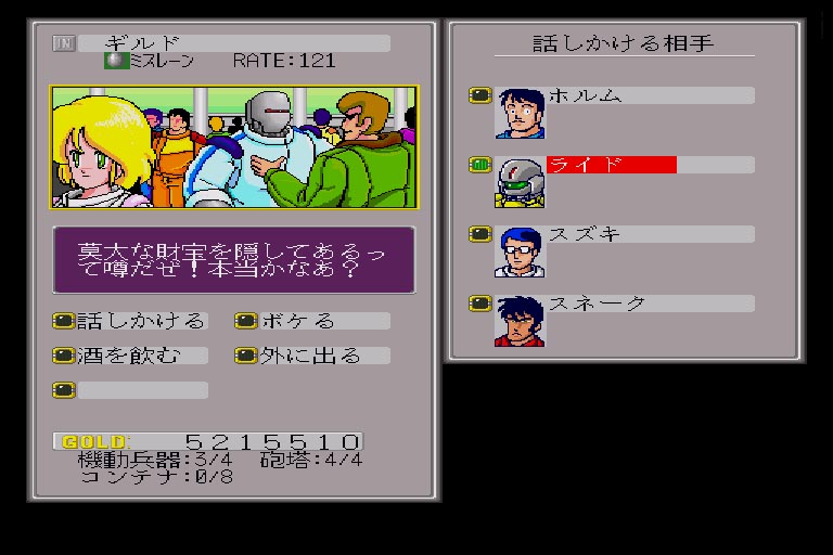 ゲームはトップビューとなっており、各地を巡りながら32種類のコンテナを上手に売買して資金を貯め、マイシップや機動兵器などを強化することになります。