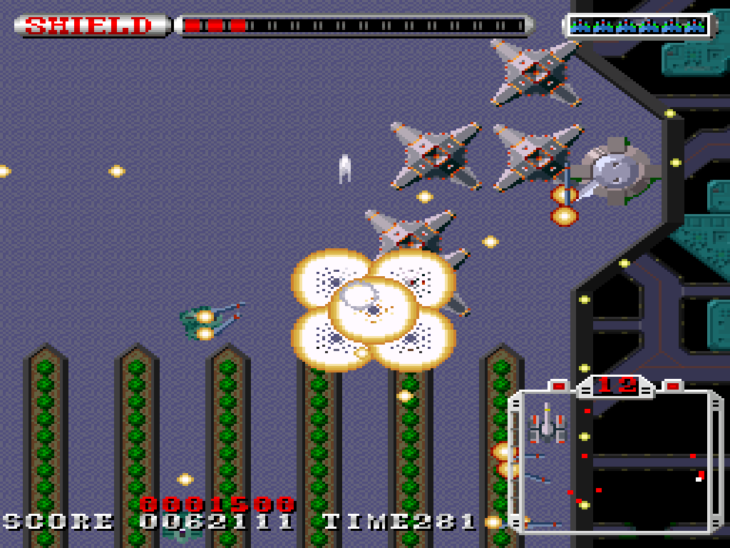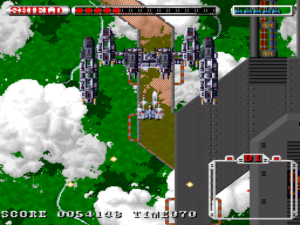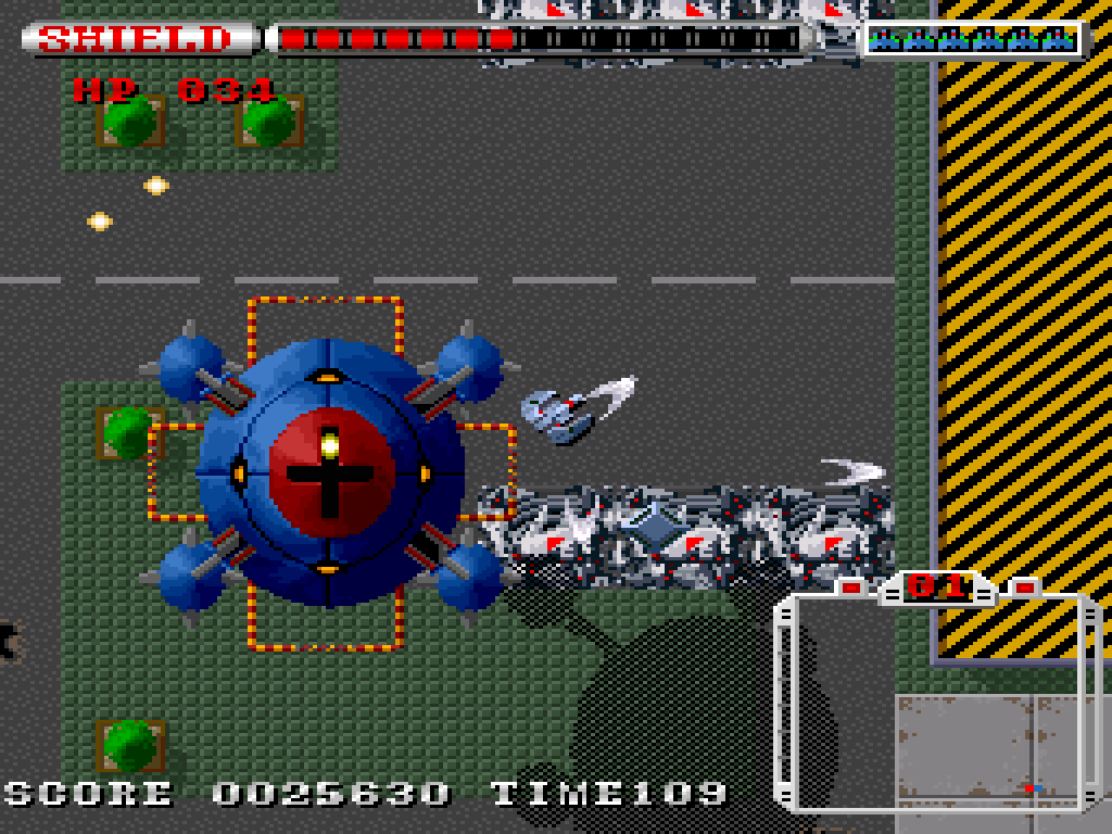 本作は1990年にリリースされたシューティングゲーム。プレイヤーは重機動兵器グラナダを操作して全9ステージを攻略します。グラナダにはショットと、反動がある代わりにショットの16倍のダメージを与えられるブラスターが搭載されており、これを駆使して戦います。なおグラナダは砲台の向きを固定したまま移動することが可能。使い方次第では効率良い撤退戦や、臨戦態勢を維持したまま角を曲がることができます。その挙動にはひとクセあるものの、攻略にはこうしたテクニックは必要不可欠! ゲーム序盤ではグラナダならではの挙動に慣れておきましょう。