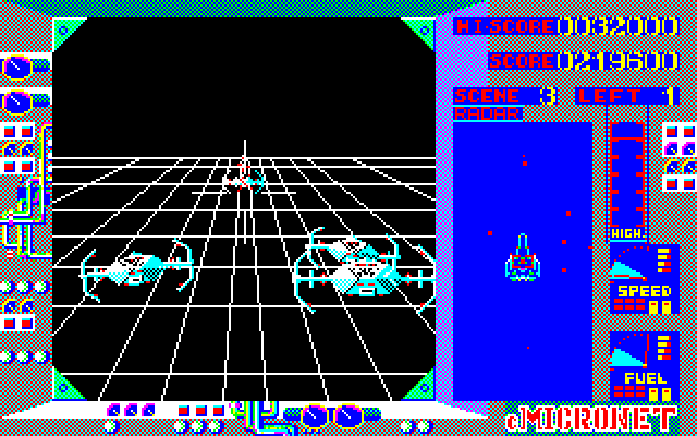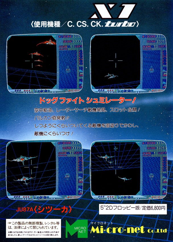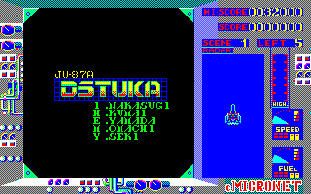 本作は1985年にリリースされたシューティングゲーム。プレイヤーは大気圏内外両用戦闘機JU87A DSTUKAを駆り、次々と登場する敵機や浮遊機雷を相手に激しい空中戦を行います。そして一定数の数の敵を撃墜すればクリアーとなり、次のステージへと進めます。