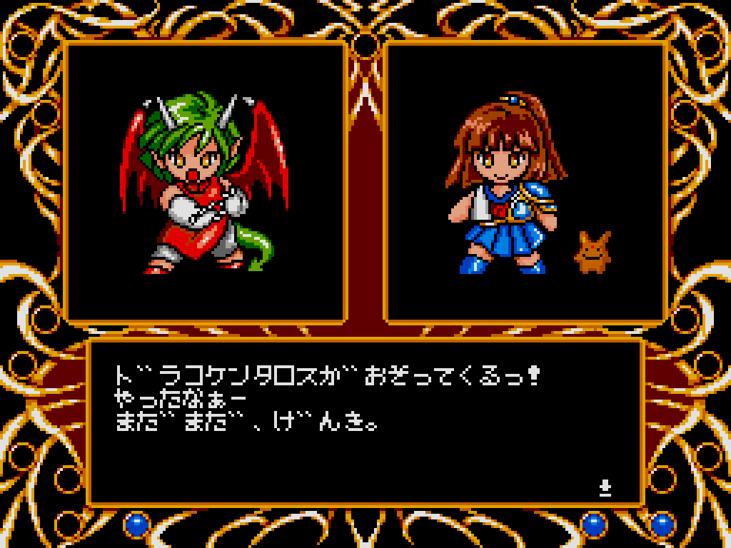 ぷよぷよ、ドラコケンタウロス、ぞうだいまおう、などのコミカルなキャラクター、体力や魔力が数値ではなく「すごいげんきっ!」などのテキストで教えてくれるファジーパラメータなど、独特な雰囲気を持った本作。後に続く『魔導物語』や『ぷよぷよ』といったシリーズの原点ともいえる名作です。