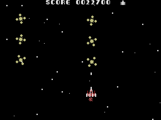 本作は1984年にリリースされたシューティングゲーム。プレイヤーは新型戦闘機タックを上下左右に操作して、画面上部から飛来する敵をショットで撃墜していきます。登場する敵は7種類で、ショットはもちろん、それぞれがユニークな動きや、複合攻撃でこちらの行く手を阻んできます。