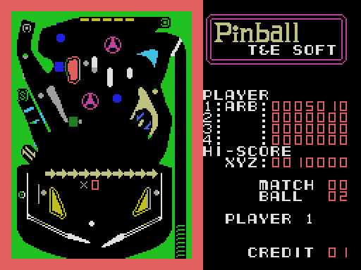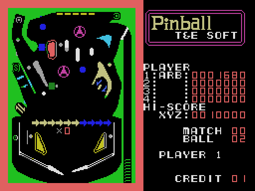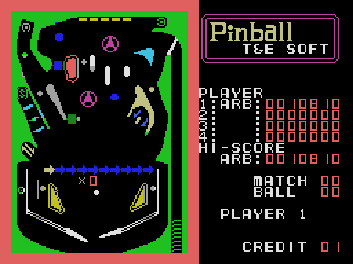 本作は1984年にリリースされたテーブルゲーム。ゲームは一般的なピンボールゲームと同様に、落ちてくるボールを左右のフリッパーで弾き返して、ひたすら得点を重ねていきます。持ち玉は3つとなっており、全て失うとゲームオーバーです。