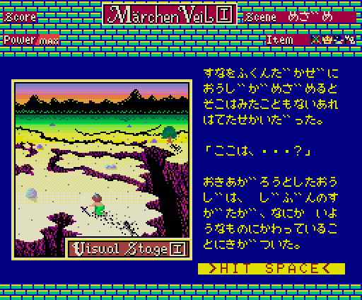 そして、ステージごとに設定された目的を達成するとビジュアルシーンに移行します。ビジュアルシーンでは、ゲームのヒントになる情報や、ゲームを深く理解するためのストーリーが語られます。マニュアルにも書かれていますが、実は本作ではビジュアルシーンこそが重要で、通常のゲームはビジュアルシーンとビジュアルシーンをつなぐためのものといっても過言ではないとのこと。ゲームに詰まったらビジュアルシーンの内容を思い出してみるといいかもしれません。