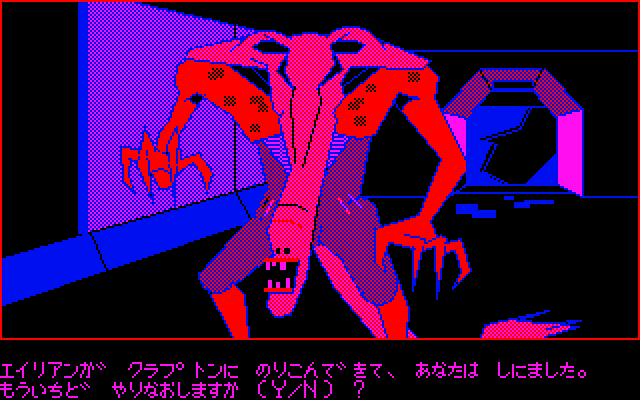 前作同様、コマンド選択+入力方式のアドベンチャーゲームとなっていますが、宇宙空間では、しばしばドッグファイトが発生! シンプルながらも緊張感のあるシューティングシーンが楽しめます。ちなみにシューティングシーンでは、しっかり敵を引き付けてからショットすればヒットさせやすいので覚えておくといいでしょう。