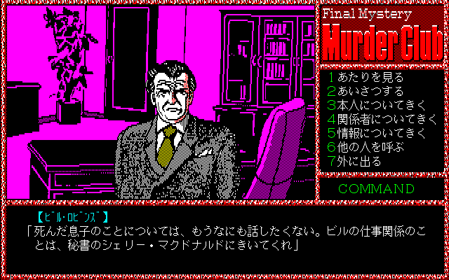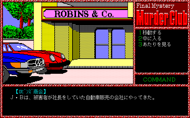 1986年に、リバーヒルソフトからリリースされた『殺人倶楽部』は、コマンド選択方式のアドベンチャーゲーム。プレイヤーは刑事J.B.ハロルドに扮して、前述した事件の解明に乗り出すことになります。