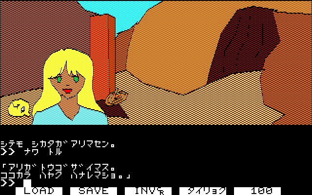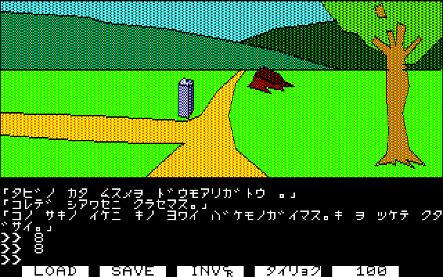 ゲームは当時主流だったカナによるコマンド入力方式を採用しており、“カワ ワタル”などの名詞+動詞を場面にあわせて使うことでゲームは進行します。不思議な琵琶法師、謎の少女、そして人を食らうモンスターなど、独特の世界観が魅力の本作。選択肢を間違えただけで瞬時にゲームオーバーになる理不尽さも含めて、まさに王道のレトロアドベンチャーゲームといえるでしょう。
