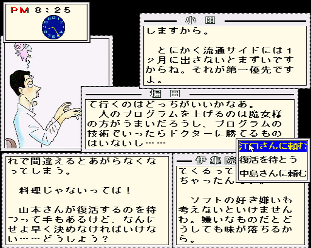 「ソフトでハードな物語」はゲーム業界を舞台とした”業界モノ”ゲームです。 プレイヤーはふとした運命のいたずらから中堅ソフト会社の社長となります。そして会社倒産の危機と戦いながらソフトの開発を行うことになるのです。それぞれに豊かな個性をもった社内スタッフ、実在の個人、団体名に限りなく近い雑誌社や競合会社、業界有名人、こういった様々な関係者との駆け引き、そして思ってもみなかったような誤算にあなたは対応できるでしょうか? 1988年に発売されたシステムサコムのノベルウェアシリーズ第2弾。ゲーム業界そのものを題材とした作品だけに、作中では「ゲーム」を元ネタとした演出が数多く使用されます。 その中でも特にBGM面での評価が高く、未だ本作品を名作たらしめる大きな要因の一つとなっています。