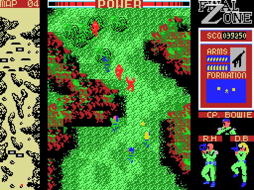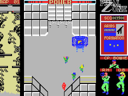 太平洋上に浮かぶ孤島、マウカ島にファラオ軍の最終兵器「GN−16B」が配備されたと言う情報が連合国軍にもたらされた。 事態を憂慮した軍上層部はこの脅威を取り除くべく少数のスペシャリストによる極秘作戦を実行。 後に「FINAL ZONE」と呼ばれる戦いの幕開けである。 プレイヤーは五人のメンバーから二人を選びフォーメーションを組んで敵陣を突破、最終兵器「GN−16B」の破壊が最終目的です。 練りこまれたキャラクター設定,ステージ間に挿入されるストーリーデモなどゲームそのものの面白さ以上にゲーム世界の表現にベクトルが向けられた当時としては珍しいタイプのゲームです。