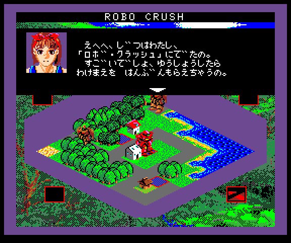 1990年に発売された、ロボットシミュレーションゲーム。 コンプティーク誌上にて連載されていた読者参加型ゲーム『ロボクラッシュ』をPCゲーム化した作品です。 プレイヤーはワーカーマシンパイロット「ヒノキミイテ」のチームを操り、ひとつの惑星をそのまま巨大な会場として開催されるロボット同士の一大対戦イベント「ロボクラッシュ」の優勝を目指します。 多種多様なパーツやロジックの組み合わせで作ったワーカーマシン同士を対戦させ、それに勝利して資金を得ることでさらにカスタマイズさせていきます。