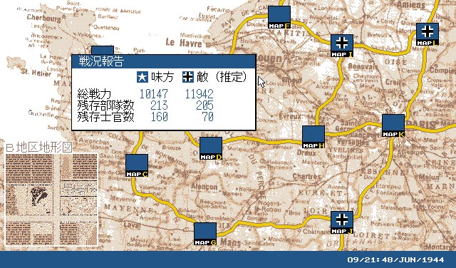 1990年にアートディンクから発売されたリアルタイムシミュレーション。 プレイヤーはノルマンディーに上陸した連合軍第7機甲師団を指揮し、北フランスに展開している独機甲師団を打ち倒す。 刻一刻と変動する戦況を見極め、ヨーロッパ戦線を勝利せよ。