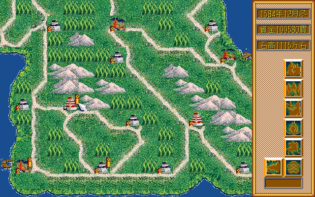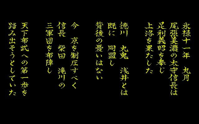 本作の最大の特徴は、既存の歴史シミュレーションゲームと比べて、歴史に忠実という点でしょう。歴史的因果関係に従って展開される戦国絵巻は、他の歴史シミュレーションゲームとは一線を画す内容。史実と同様に1568年9月、足利義昭を奉じて上洛する所から始まりますが、信長包囲網や九十九髪茄子と松永久秀のエピソードなどもゲーム中に再現されており、歴史に詳しければ詳しいほど、ニヤリとできるに違いありません。おそらく本作をプレイしていると、歴史という大河に逆らうことがいかに難しいかを実感できるでしょう。