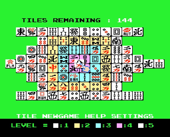 上海は麻雀牌を使ったパズルゲーム。ルールは簡単で、積み上げられた麻雀牌の中から同じ牌を探し出して二枚一組で取っていくだけ。最終的に全部の牌を取ることができればクリアーとなります。とはいっても牌を取るには、目的となる牌の上に他の牌が少しでも載っていないこと、目的の牌の両サイドが他の牌でふさがれていないことの二つを守らなければならず、このルールが上海のゲーム性を深めているのです。なお牌が残っているにも関わらず、取れる牌がなくなるとゲームオーバーとなります。