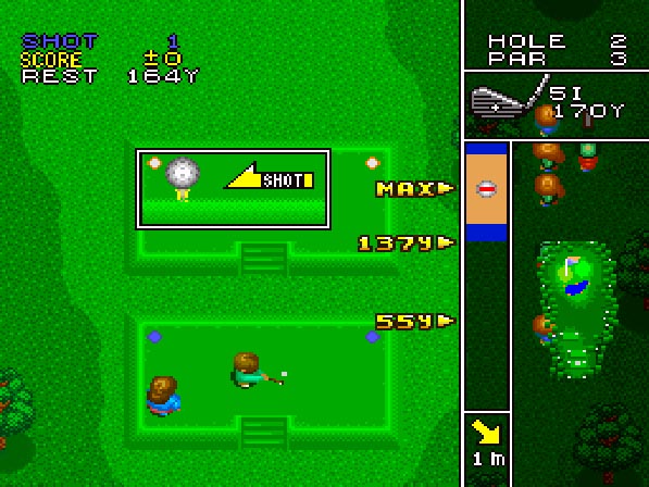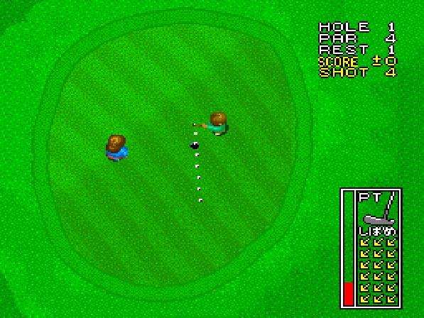 『スーパー バーディ ラッシュ』は、1992年にデータイーストからリリースされたゴルフゲームです。プレイヤーはまず最初に男女からゴルファーを選ぶことになります。男女で能力の違いはありませんが、第一打を行うティーグラウンドが異なるので、ゲームに慣れているプレイヤーは男性ゴルファーを。初心者は女性ゴルファーを選ぶといいでしょう。なおトーナメントは同性のみの対戦となるので注意。
